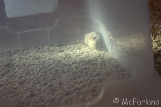 My first thought... he's just getting to sleep and dozed off for a second... I went up to get the details. Walker said, "He was sitting right by the stairs and as soon as I called down to you he ran in your room!" I didn't want to just dismiss him so I looked around didn't see anything... no signs or anything. Pretty soon Stewart comes up and we re-check all around in our room and decide to just be on the safe side and try the cubby dormer area. Bit by bit we take out the storage things... talking all the while about how there couldn't possibly be a mouse... we have 2 dogs and a cat and we are on the second floor of the house... no way!
