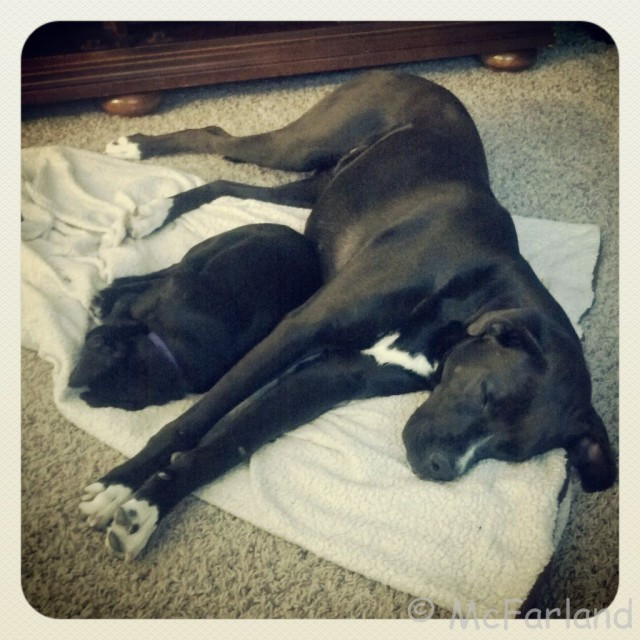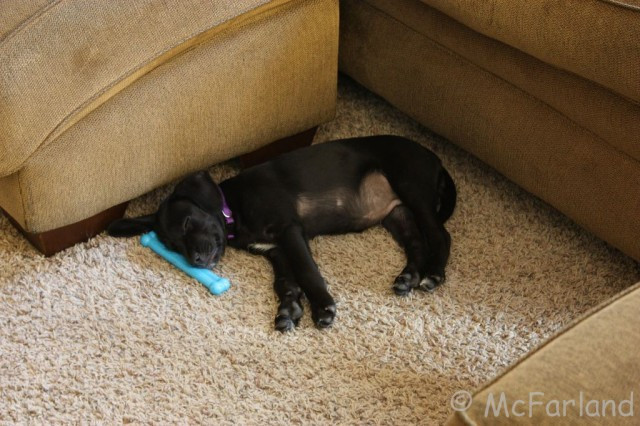 Which makes for a tired pup and often plops down to rest and quickly zonks out..