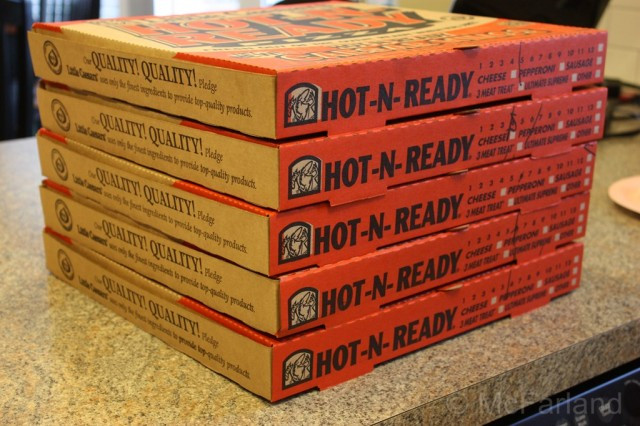 So my thinking for dinner was the usual birthday party food... pizza and pop. In past years they've consumed all we had and then wanted more so with that in mind I got 5 boxes and 3 bags of breadsticks...