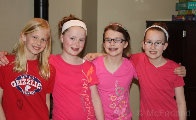 It was a just the perfect amount of girls this year... she hand picked her besties this year instead of our usual rule of "invite everyone". Here's the early comers and bday girl... so cute they are!
