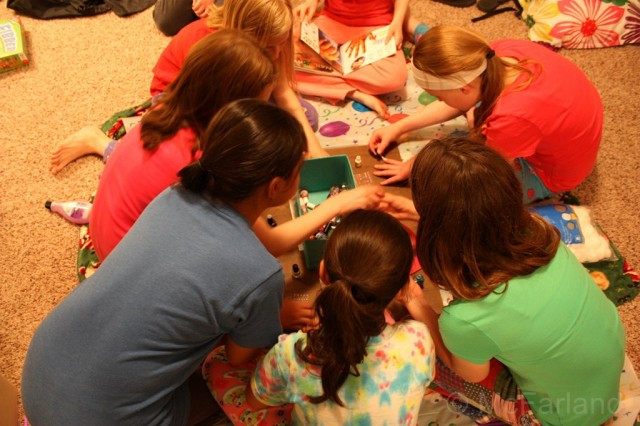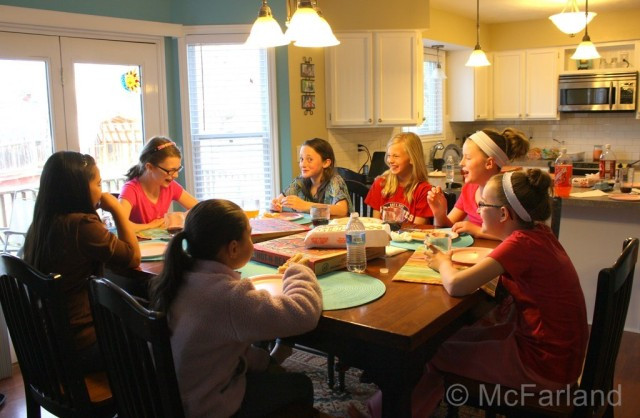 And this year we had 4 boxes and 2 bags of breadsticks LEFT!! You never know I guess. So fun to just sit back and watch... all the constant laughing... the squeals and "Oh my gosh!" mixed in with random singing... and silliness... fun times!