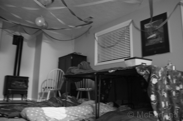 Most of the girls went home a little after 11pm... we had a couple over-nighters who were quite exhausted and snug in their beds just as I headed up at 12:30... I couldn't refuse a quick picture of the sleeping fort...